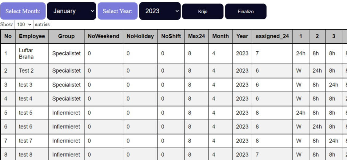 We played with an excellent tool, that is Google Sheets, used it as a database, and as well built a page for processing monthly rosters for personnel, considering holidays, vacations, weekends, departments, etc.
